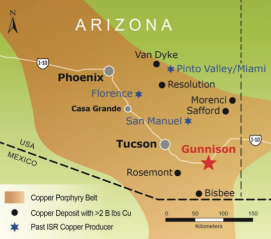 Excelsior wants to build Gunnison in three phases with initial capacity of 25m pounds a year (11,340tpa) which is expected to cost a relatively low $47m to build using an existing processing plant at the neighbouring Johnson Camp mine. Excelsior bought the plant for $8.4m in 2015. Gunnison could eventually reach 125m pounds a year.