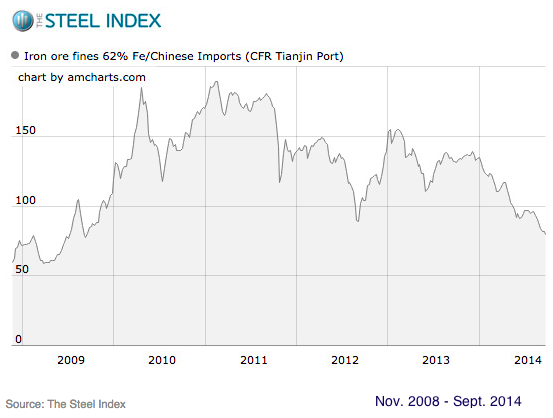 Oversupply, together with a slowdown in demand from top consumer China, has caused prices to plummet by almost 40% this year below $80 per ton, their lowest level since 2009. And the top three iron miners have no plans to slowdown their plans to boost production.