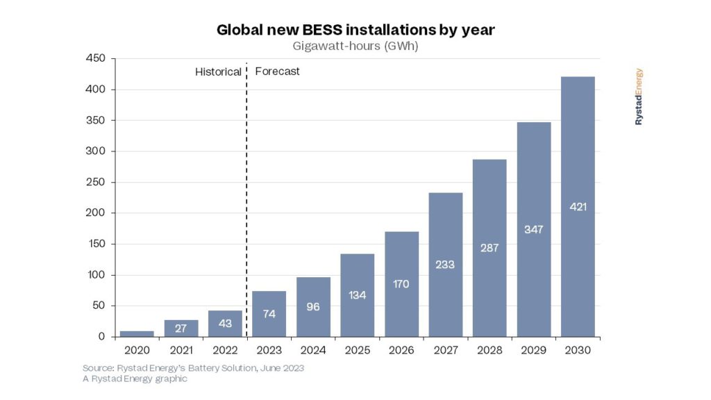 “Batteries will play a fundamental role in the future of energy production and power demand, solving the intermittency problem of renewable energy generation. To decrease reliance on coal and gas as back-up power generation sources, countries must invest in BESS now,” says Sepehr Soltani, energy storage analyst at Rystad Energy.