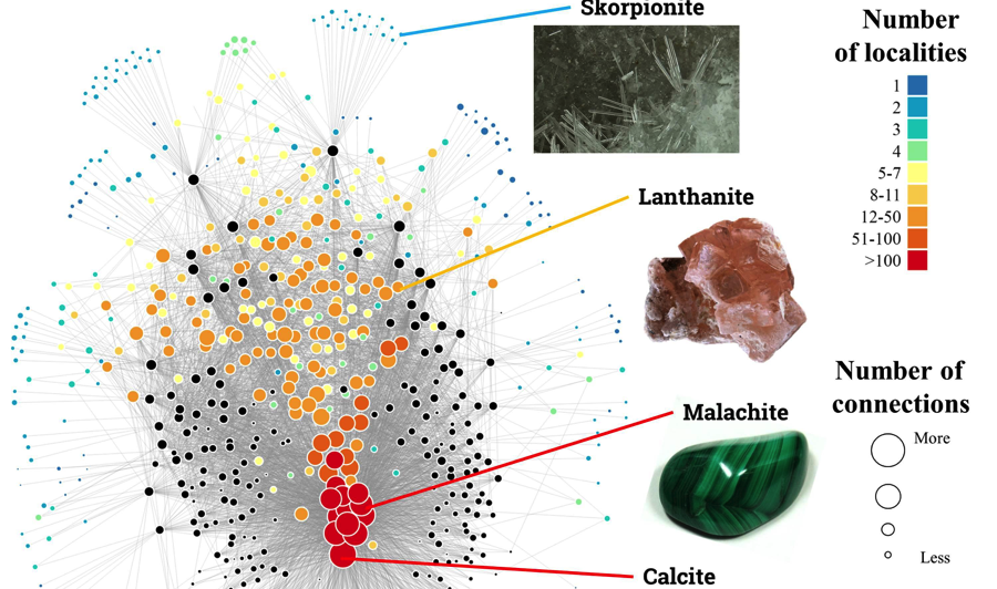 Morrison and her colleagues’ plan is to use network analysis to delve deeply into the databases that describe millions of mineral specimens from hundreds of thousands of localities around the world and that have been put together by Earth scientists throughout centuries.