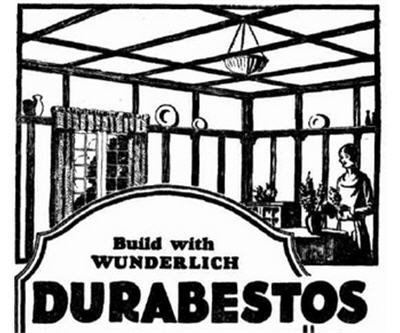 Image of Quebec asbestos mine and 1929 advertisement for Durabestos