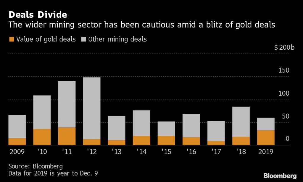 Pending and completed gold acquisitions had reached about $33 billion to Dec. 9, 2019