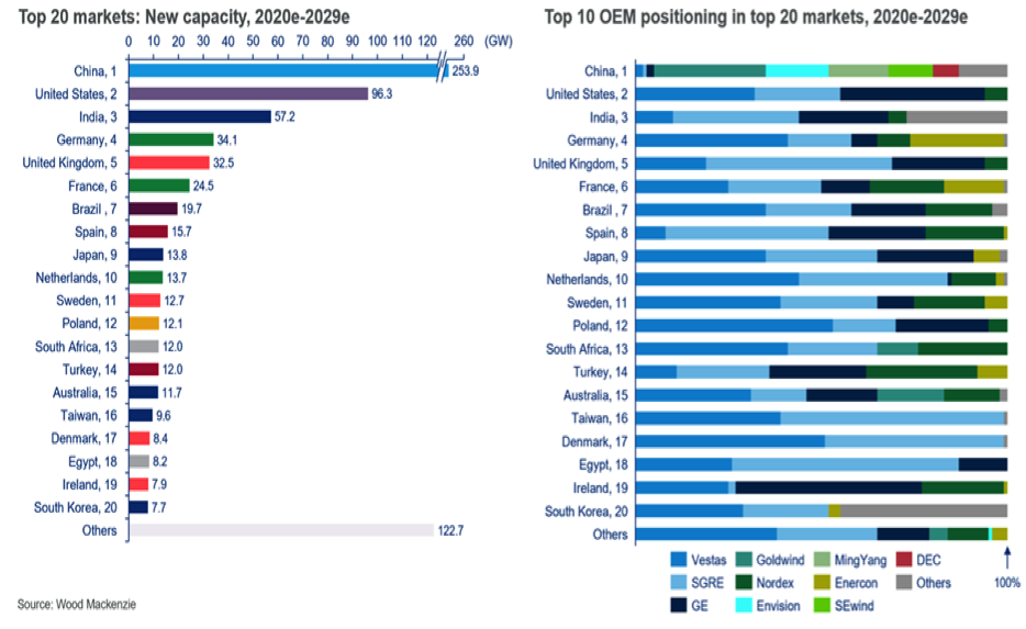 For example, the Chinese company Goldwind is tied with General Electric as the world’s largest manufacturer of wind turbines, but China’s wind turbine industry collectively represents about 50% of global wind turbine production. Furthermore, you cannot build a wind turbine without rare earth magnets. China produces over 85% of the magnets that go into its competitors wind turbines. China’s competitors don’t have a product without China’s RE magnets. As a final insult, China is by far the world’s largest producer of wind energy, at close to two times the US.