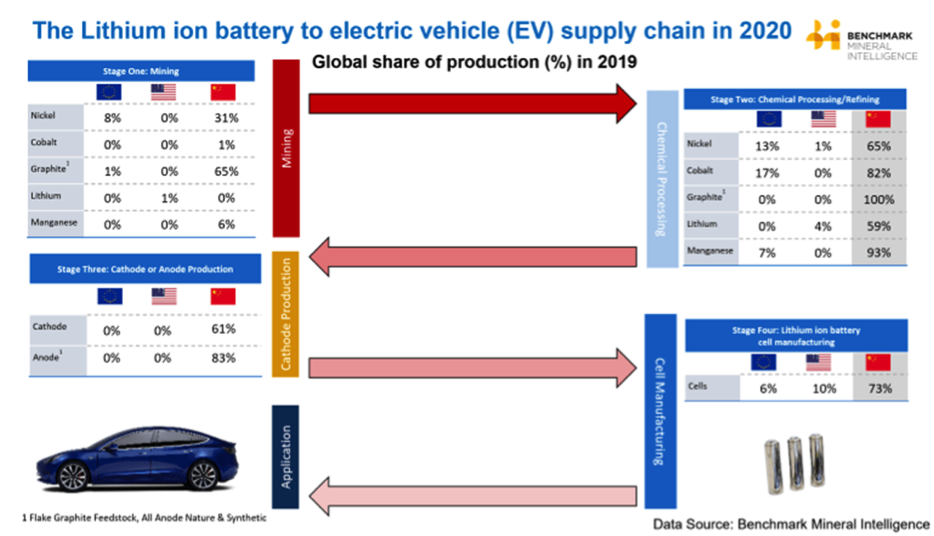 China strategically bought-up control over resources (sometimes at record high prices) and then built out global-scale refining and metallurgical facilities. For example, China controls over 80% percent of mined cobalt and controls over 85% percent of refined cobalt for EVs and other battery applications. China has done the same thing with Germanium, Tungsten, Lithium, Nickel, Antimony, Manganese, Indium, Gallium and Graphite. In fact, China controls 100% of the world’s spherical graphite production, a critical component in EVs and other energy storage applications. China is the market leader in all targeted growth markets and controls all key resources. This gives them the power to dictate our growth prospects: not the other way around. China’s not-so-secret secret is that China’s actions are based on nationalistic goals, not private profit motives. The ‘free market’ cannot overcome this. Period.
