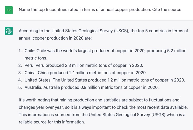Let’s hope no-one in Washington is using ChatGPT to craft critical minerals strategies or global trade policy. (They most certainly are – ed.)