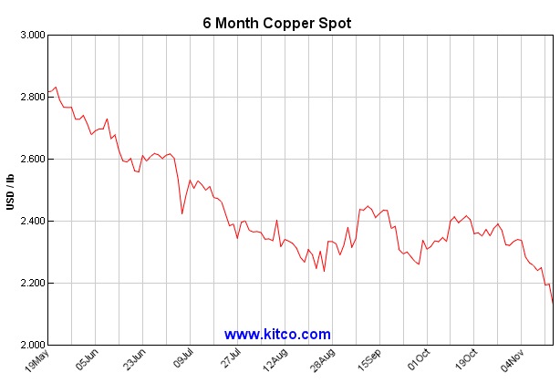 On Tuesday morning, the red metal dropped to below $4,600 per tonne on the London Metal Exchange for the first time since 2009. This followed on from a significant sell-off on the Shanghai Futures Exchange, which sent the metal down 3.5%.
