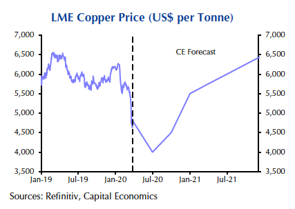 Thereafter, if we are right in assuming a steady relaxation of virus containment measures, the price of copper should start to rise again from the second half of 2020.