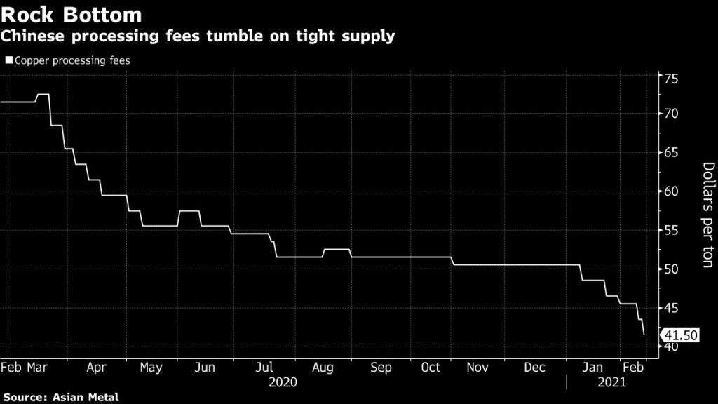 Chinese copper smelters grappling with a shortage of semi-processed material are set to see an influx of supply from South America, a sign that the tightness helping supercharge the metal’s rally may be easing.