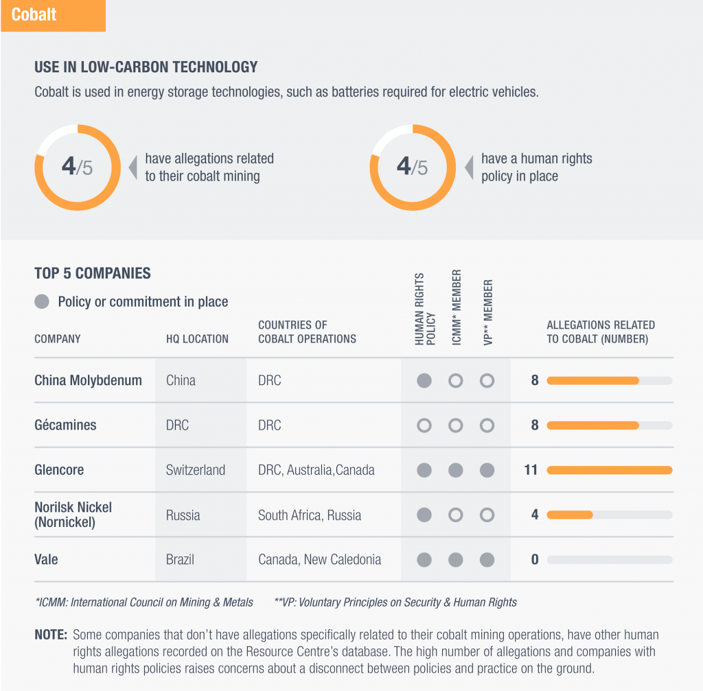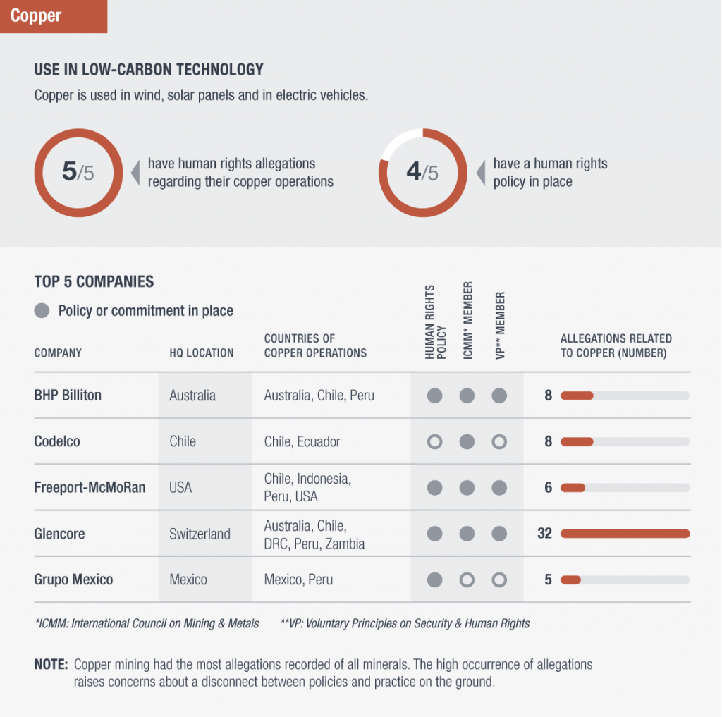 According to London-based watchdog Business & Human Rights Resource Centre (BHRRC), 87% (20/23) of the top five lithium, copper, cobalt, manganese, nickel and zinc – six minerals essential to the renewable energy industry – have faced allegations of abuse, including land rights infringements, corruption, violence or death over the past 10 years.