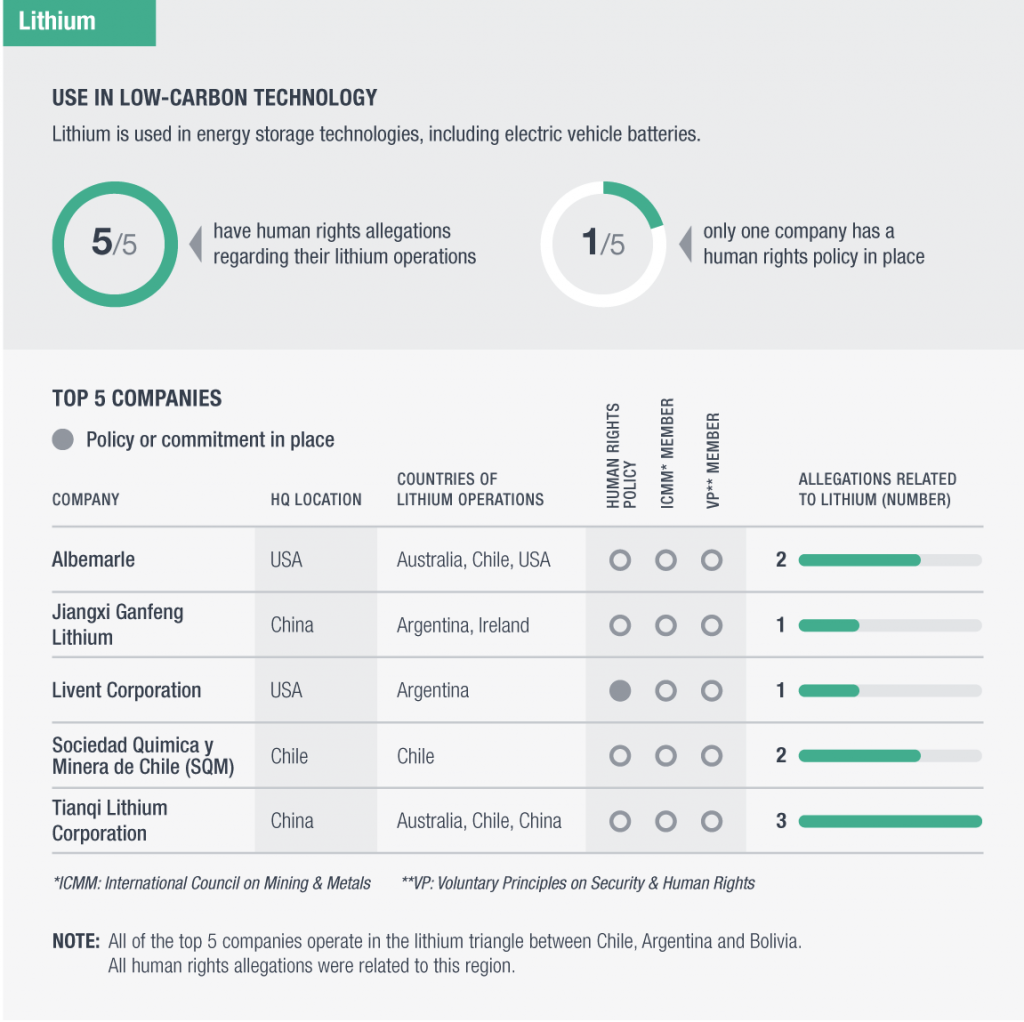 The watchdog says it has found evidence of companies including Albemarle, SQM, Livent Corporation, Tianqi Lithium and Jiangxi Ganfeng Lithium, being accused of rights abuse between 2010 and 2019. From them, only one of the world’s top companies, Livent Corporation, has related policy available.