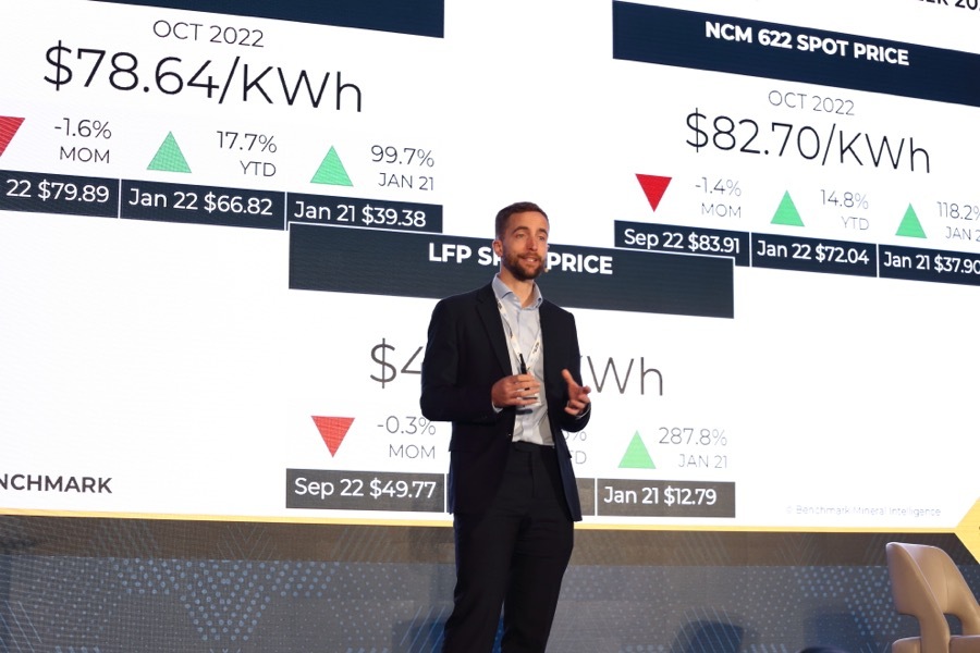 Caspar Rawles, Benchmark’s Chief Data Officer, told the conference audience that global cathode production has increased at an annual compound rate of 42% since 2017 and is forecast to top 2 million tonnes this year.