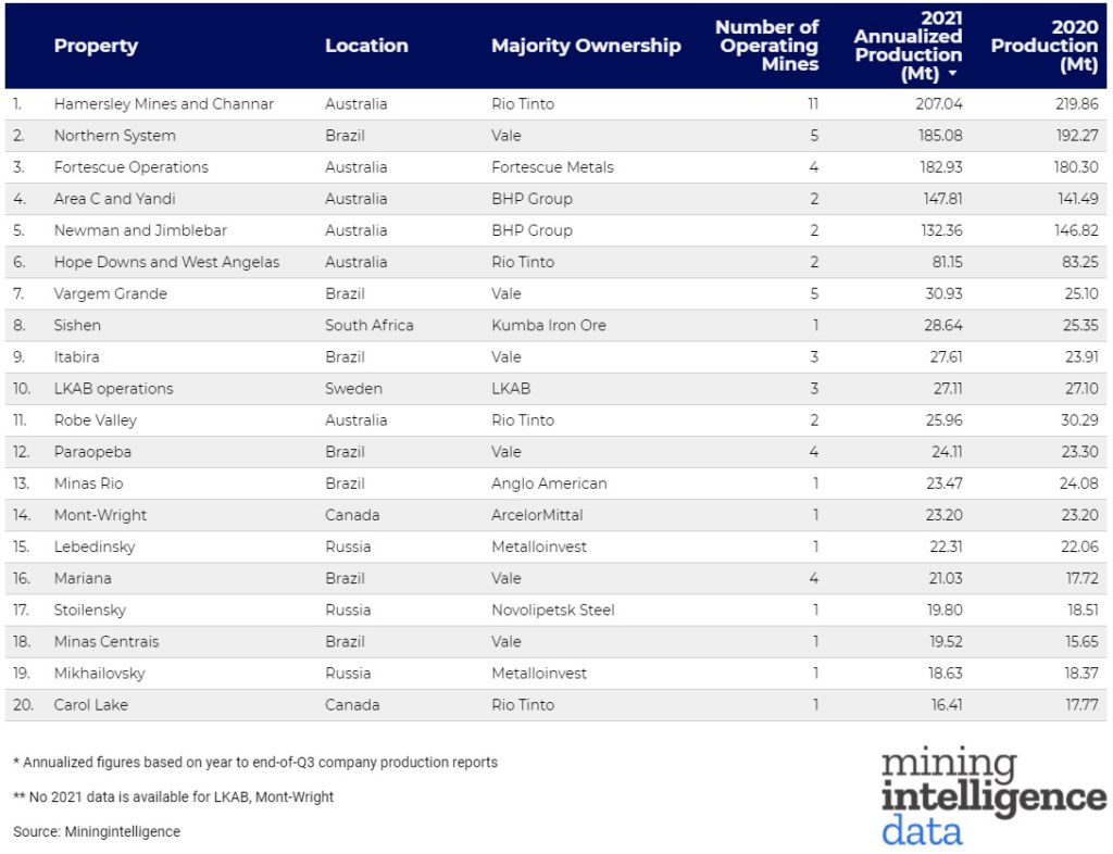 RANKED: World’s top 20 biggest iron ore operations