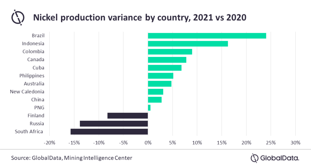 “Combined production from Indonesia, the Philippines and Brazil is expected to increase from a collective 1,160kt in 2020 to 1,316.8kt in 2021 – an increase of 13.5%. The increase in production will be supported by the expansion of Indonesia’s nickel industry, the resumption of production at various mines in the Philippines and the ramp up at the Santa Rita mine in Brazil, which was previously halted in 2015,” said Vinneth Bajaj, GlobalData associate project manager.