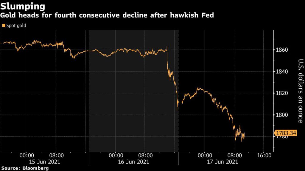 Gold price dives past $1,800 as Fed signals earlier rate increases