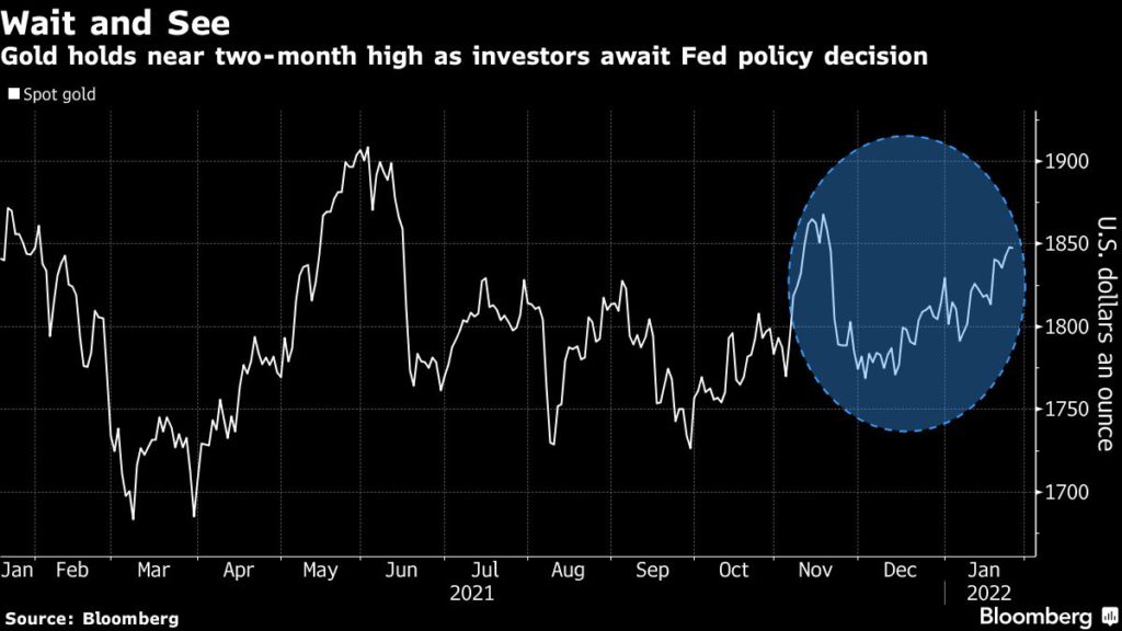 Bullion has risen more than 4% since the end of November amid headwinds in equity markets as investors hone in on the possibility of an error by the Fed. The risk of a Russian invasion of Ukraine and a cut in the International Monetary Fund’s world economic growth forecast for this year are also aiding the safe haven asset.
