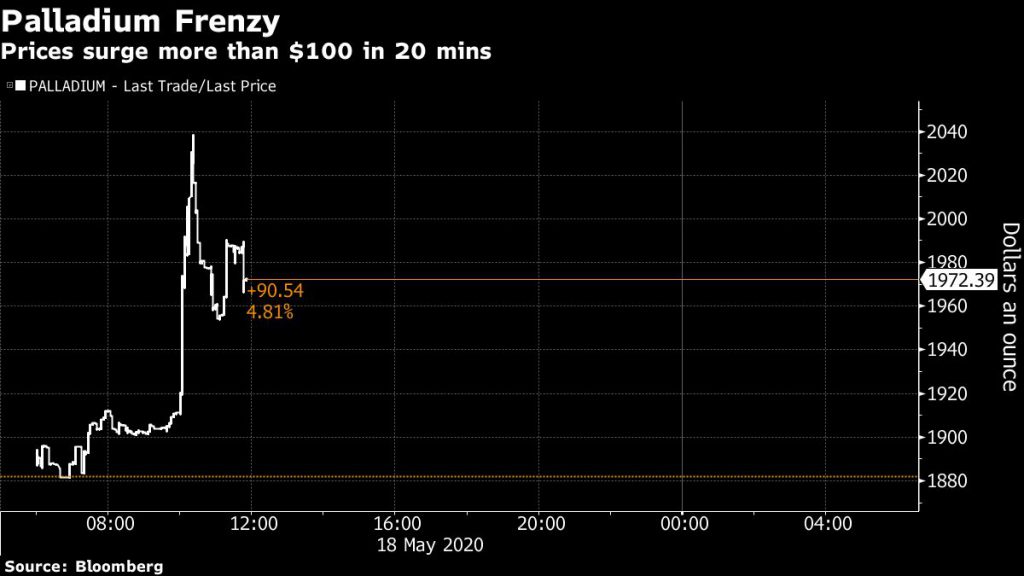 “Palladium is seeing strength on supply concerns due to the virus-related reduction in mining activities,” Gnanasekar Thiagarajan, director at Commtrendz Risk Management Services Pvt, told Bloomberg. “During May-June output is expected to be lower.”