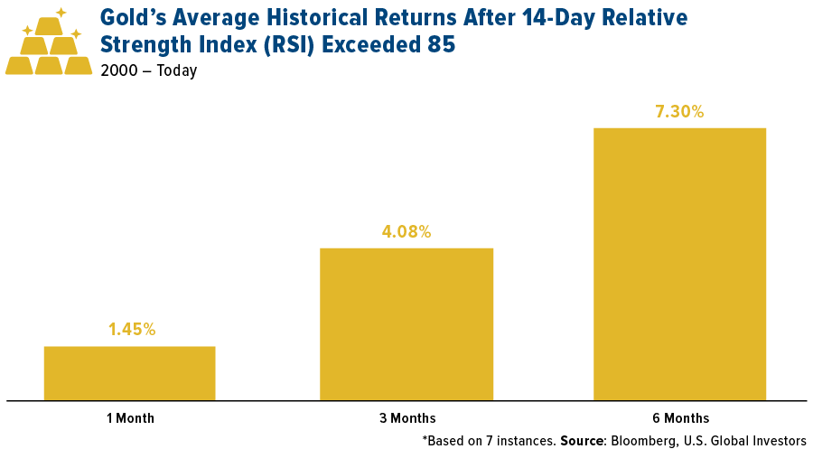 Frank Holmes, CEO of US Global Investors, also analyzed gold’s 14-day RSI and concluded that “the conditions at the moment are highly supportive of gold and precious metals.”