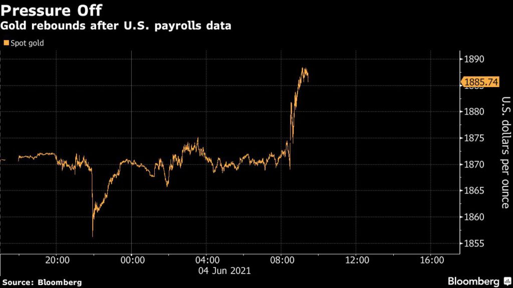 While US employment numbers accelerated in May, the gains “probably aren’t enough to push the Federal Reserve to alter their policies sooner,” said Naeem Aslam, chief market analyst at Ava Trade, in an emailed note to Bloomberg.