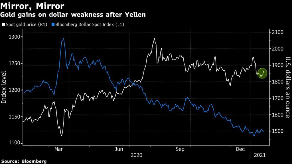 She also disavowed using exchange-rate policy to weaken the dollar, a difference from outgoing Treasury Secretary Steven Mnuchin, without explicitly referring to a “strong” dollar.