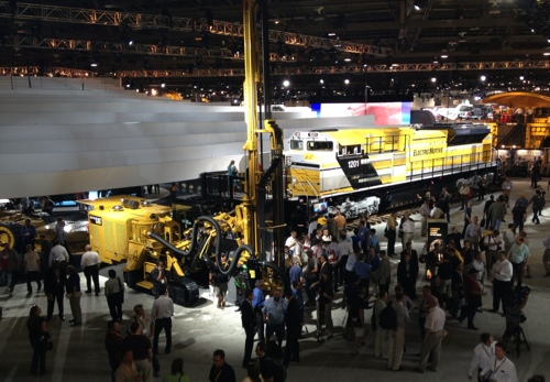 The convention’s biggest stunt is displaying a 420,000 pounds (190,509 kg) Electo-Motive diesel locomotive, part of Caterpillar’s product line.