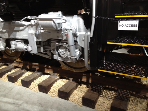 To get the locomotive to the convention center, the train was picked up at a rail spur in Las Vegas, dropped on a flat bed truck and then driven down Las Vegas Boulevard at five miles per hour during the middle of the night. The exhibit area had to be dug up and reinforced before the locomotive could be parked.