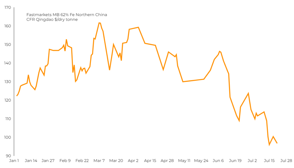 Iron ore price back below $100 on clouded China demand outlook