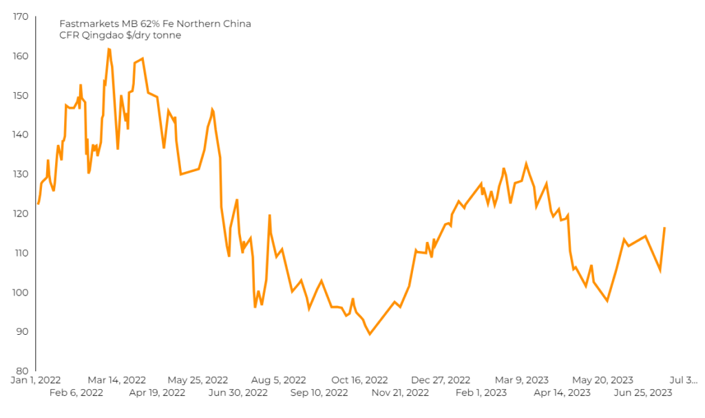 According to Fastmarkets MB, benchmark 62% Fe fines imported into Northern China were changing hands for $116.52 a tonne Friday morning, up 4.25%.