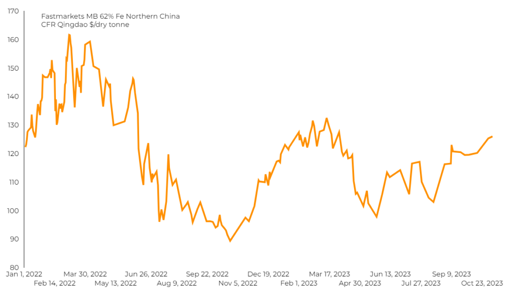 According to Fastmarkets, benchmark 62% Fe fines imported into Northern China fell 0.69%, to $126.01 per ton.