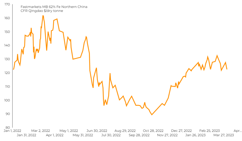 Benchmark 62% Fe fines imported into Northern China fell 3.96%, to $122.45 per tonne.