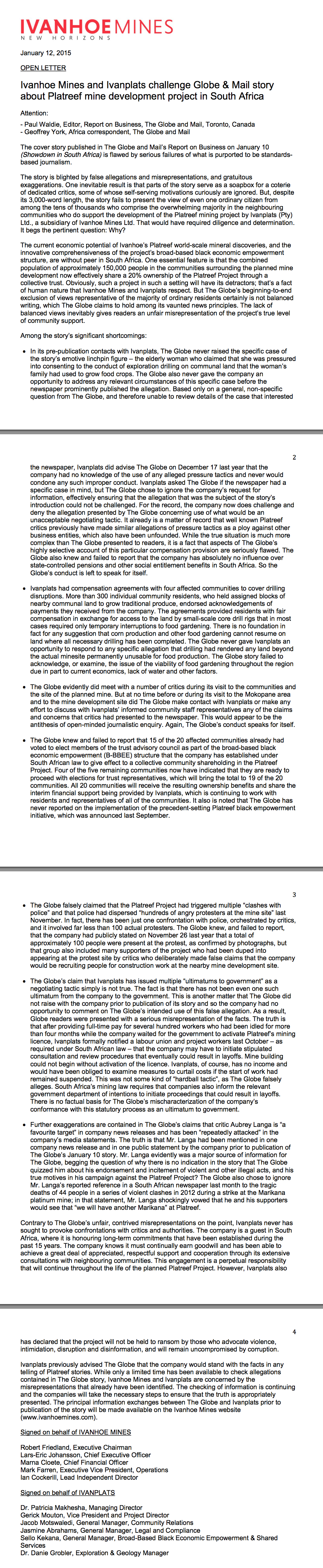 Read Ivanhoe Mines letter here: