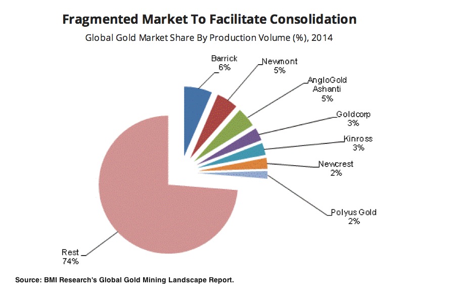 However, while the global gold mining landscape will see increasing consolidation and divestment, the market share will remain diversified, with the top 10 producers accounting for about 25% of global output, according to a fresh report by BMI Research.