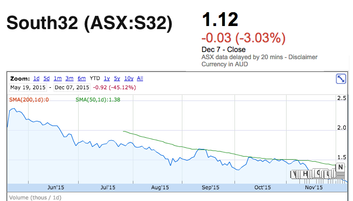 The Perth-based company closed Monday in Sydney more than 3% down at A$1.12 per share. Since first trading on the ASX in May this year, South32 has lost more than 45% of its value, as the company focuses on manganese, silver, nickel and coking coal, some of the commodities that have been hardest hit globally in the wake of China’s economic slowdown.
