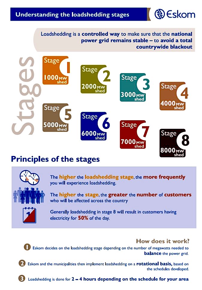 For six consecutive days, Eskom has been forced to implement rotational load shedding — a South African term for planned power cuts — as a mean of averting a nationwide blackout. Today, however, is the first time it moves to Stage 6 load shedding, scheduled from 6pm local time onwards.