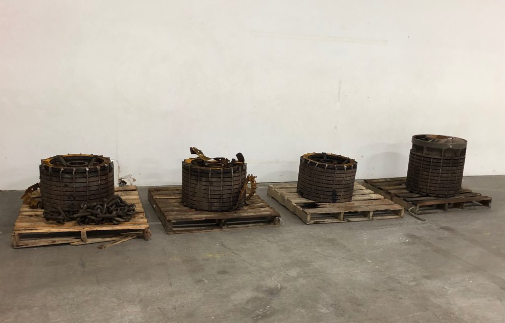 Rare earth permanent magnets from wind turbines to demagnetize and prep for recycling. Image from American Resources Corp.