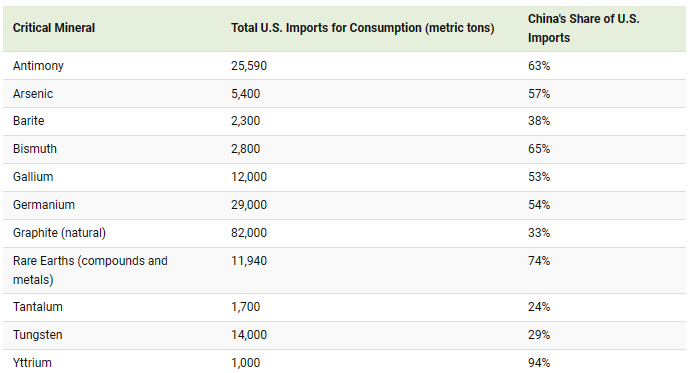 China is the US’ primary source of rare earth elements, along with ten other critical minerals.