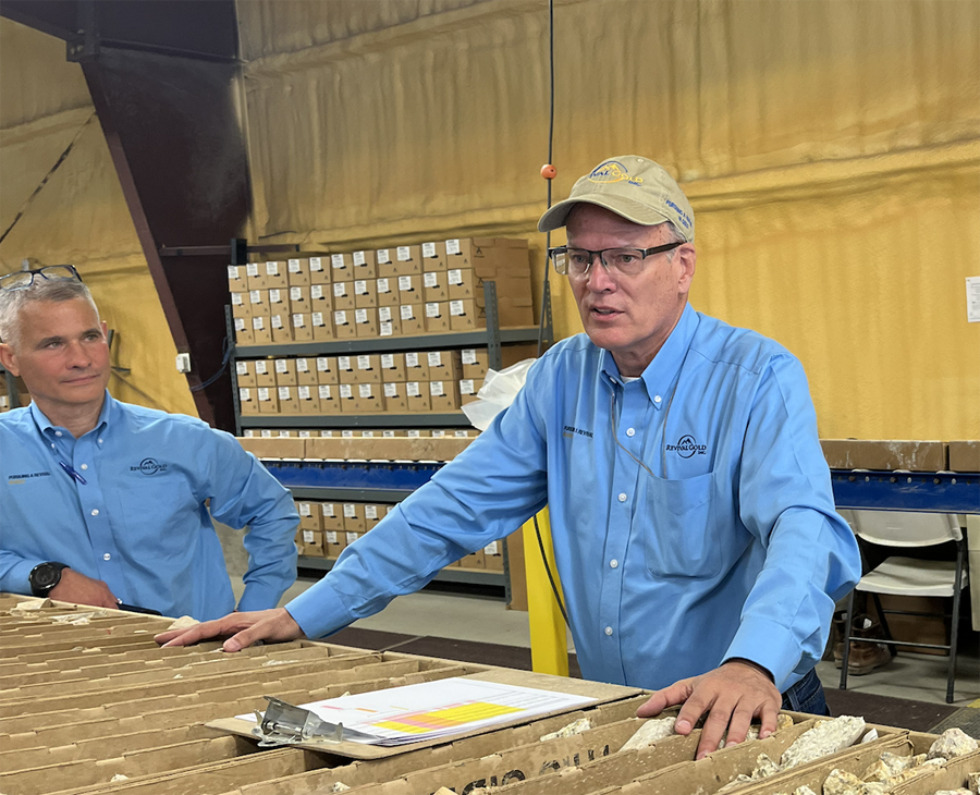 Revival Gold Ceo Hugh Agro, left, VP exploration Steve Priesmyer on right. Image by Amanda Stutt