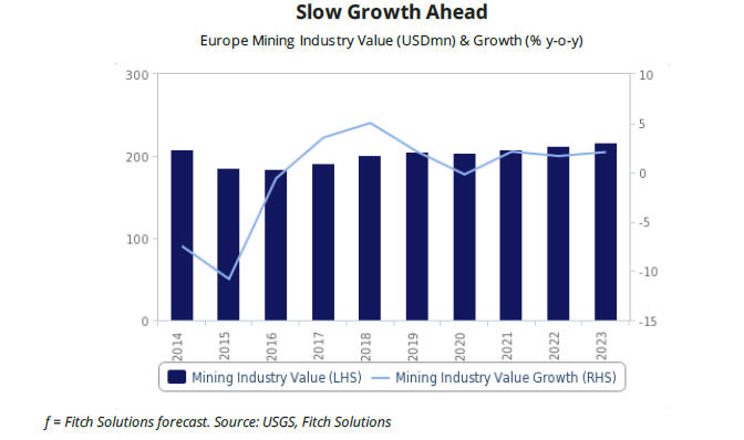 Growth opportunities stand to be further impeded by a continued lack of investment in the European mining industry, and the outlook for Poland and Ukraine specifically will be hindered by EU environmental regulations and an ongoing armed conflict, Fitch forecasts.