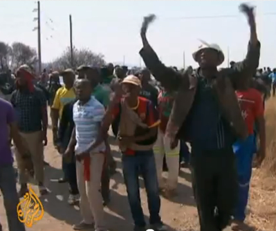 Image: Miners striking, by Aljazeera via You Tube.