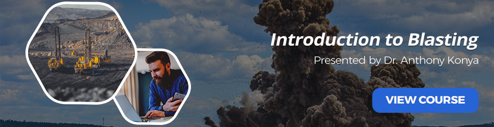 Konya has authored the online, on-demand Introduction to Blasting course at Edumine for two years, coaching on modern methods that have replaced old concepts to enable blasters and engineers to make significant improvements to the drilling and blasting process. Here’s a glimpse of the syllabus: