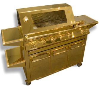 High-end Aussie grill maker Beef Eater made a backyard grill that has everything a normal device would have, except it is covered in 24-carat gold. The company made only one of the golden grills, for the Sydney Home Show in 2007. “It’s for the man who has everything and wants more,” wrote Peter Woodland, managing director of BeefEater, in a blog post headlined, Pimp My Grill.