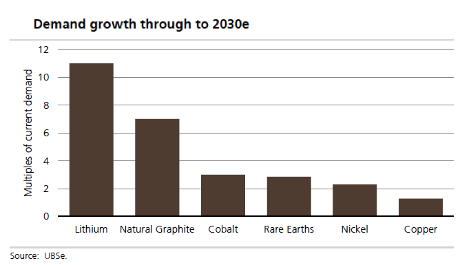 UBS upgraded its already rosy forecasts, which were only made last November, and the bank is now among the most bullish on EV penetration and battery raw material demand through 2030: