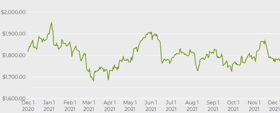 As a result, gold prices are trading 4.9% lower year-to-date (as of December 27, 2021), paving the way for its first annual loss in three years.