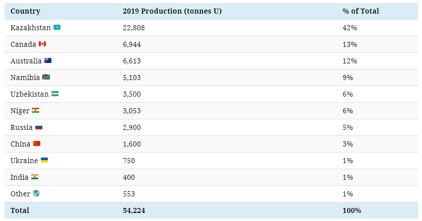 Here are the top 10 uranium-producing countries based on 2019 production:
