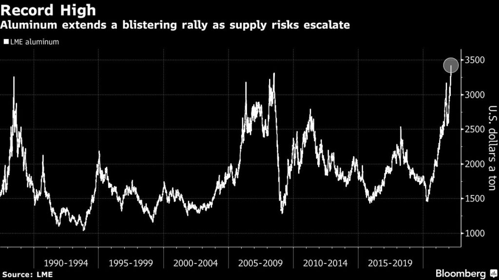 The gains will heap fresh inflationary pressure on buyers who use aluminum in everything from cables to drinks cans, and the threat of disruption will be particularly troubling for manufacturers in Europe who buy large volumes of specialist products using it that come from Russia. There’s also mounting concern about supply from western producers, who face even more extreme spikes in gas and power prices.