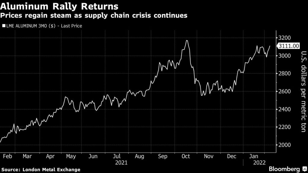 Prices of industrial metals cooled off toward the end of the year, but staged another rally since late December as energy prices, geopolitical concerns and the omicron variant put even more pressure on an already broken supply chain. A gauge of industrial metals hit a record high in late January.