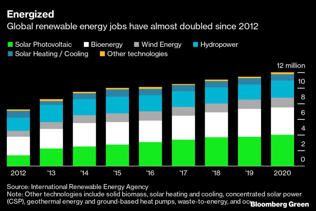 Clean energy could create more than 38 million jobs worldwide by the end of the decade and meeting that demand without a labor shortage requires accelerating efforts to not only lure new entrants, but also to create a clearer plan to retrain the industry’s veteran workforce as traditional fuel sources decline.