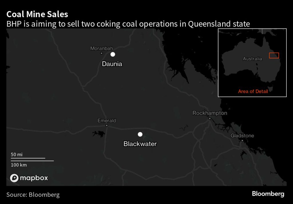 Efforts to divest BHP’s interests in the Daunia and Blackwater sites in Queensland are ongoing, chief development officer Johan van Jaarsveld told reporters Thursday in Melbourne. BHP co-owns the operations in a joint venture with Mitsubishi Corp., and its stakes are worth about $4.2 billion, according to Liberum Capital Ltd.