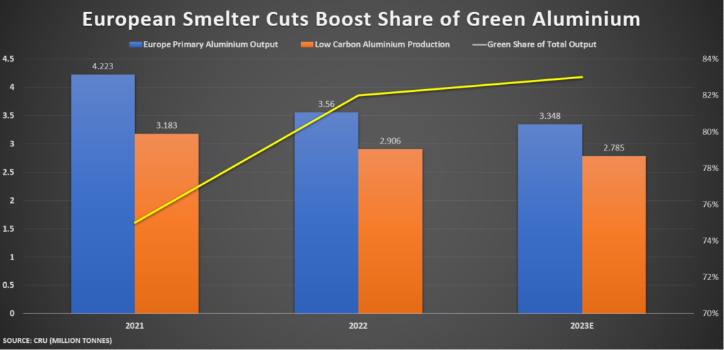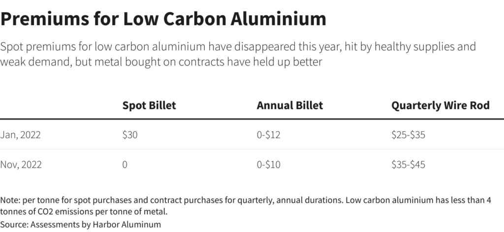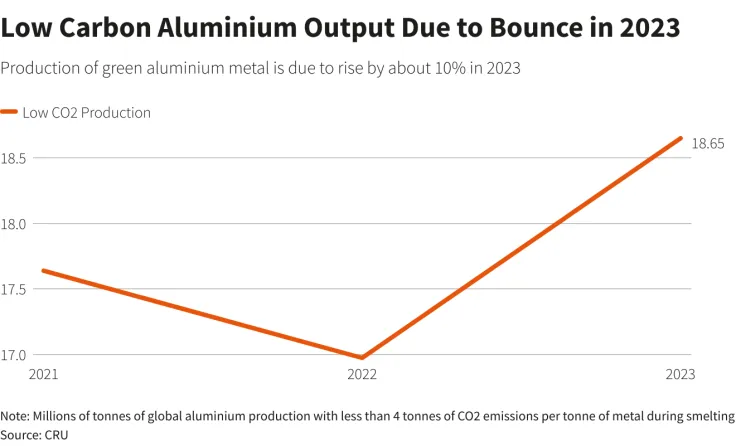 Global supplies of low-carbon aluminum have been robust for several years, but dipped in 2022 mainly due to restrictions in southern provinces in top producer China that rely on hydro power.