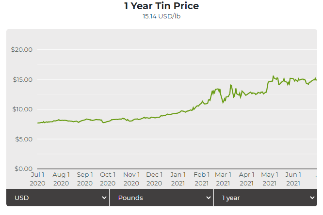 Click here for an interactive chart of tin prices