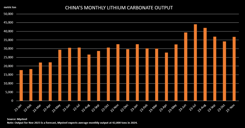 It expects Chinese lithium carbonate prices as low as 80,000 yuan a ton in 2024, averaging at around 100,000 yuan, equivalent to production costs in Jiangxi, China’s biggest producing region of the chemical.